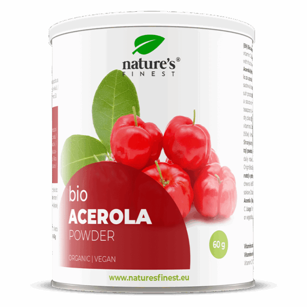 Acerola is felrood zoals een kers en is een van de rijkste vruchten aan vitamine C. Acerola bevat aanzienlijk meer vitamine C dan citroen. Vitamine C draagt bij tot de vermindering van vermoeidheid en uitputting en speelt een rol in de werking van het immuunsysteem.