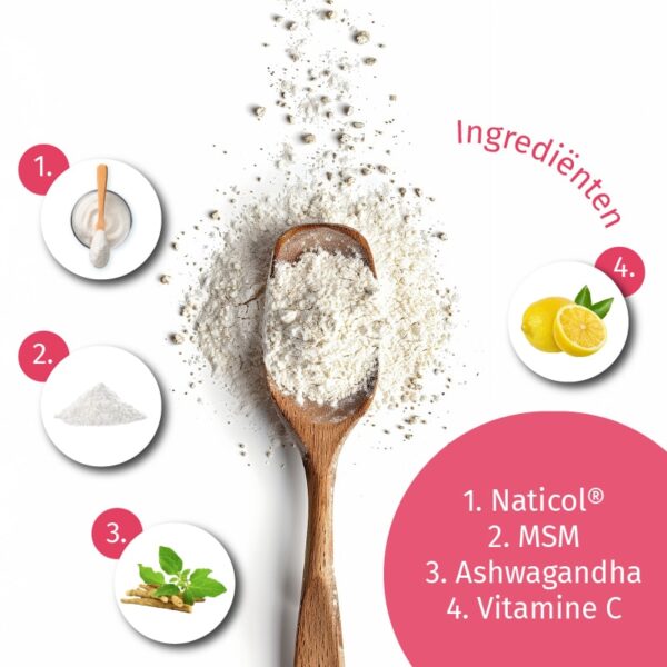 De aanbevolen dagelijkse dosis is 10 g (2 maatschepjes). Meng met water en wacht 2 minuten totdat het collageen volledig is opgelost. Met 10 g poeder consumeer je 5 g Naticol collageenpeptiden.