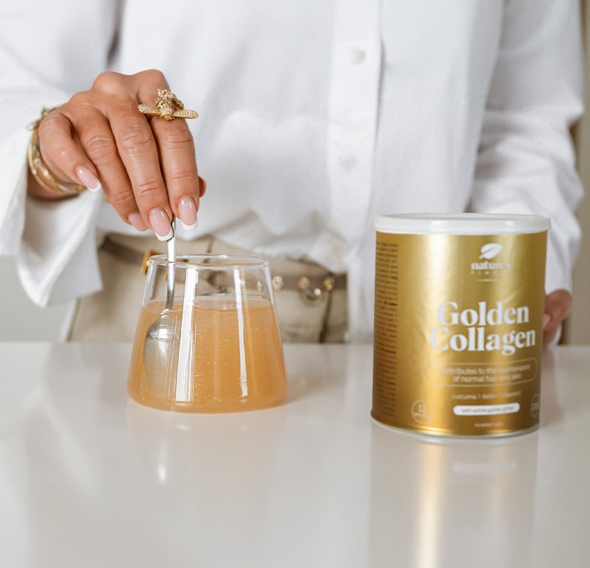 In tegenstelling tot gewone collageensupplementen lost onze Golden Collagen op in een prachtige gouden glans, waardoor de dagelijkse inname van collageen een luxe ritueel wordt.