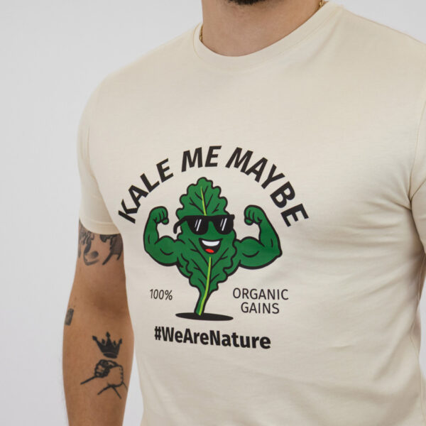 Een minimalistisch beige T-shirt dat moeiteloze stijl combineert met een ontspannen gevoel. Met de speelse tekst “Kale Me Maybe” en een leuke graphic geeft het elke outfit een relaxte, zelfverzekerde touch.
