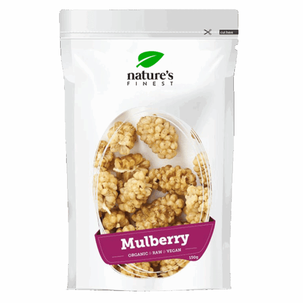 Moerbeien zijn een van de oudste vruchten die worden gebruikt om te drogen. Biologische moerbeien bevatten een bewonderenswaardige hoeveelheid vitamine C, voedingsvezels en ijzer.