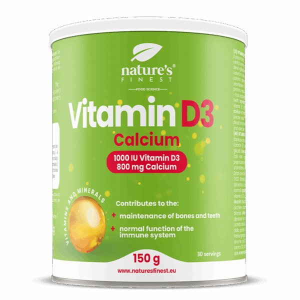 Met vitamine D3 + Calcium poeder zorgen we voor de beste absorptie, die onmiddellijk na de inname begint. De primaire rol van vitamine D is het handhaven van homeostase en een constant niveau van calcium en fosfaten in het bloedplasma.